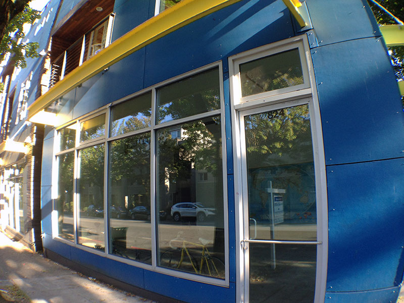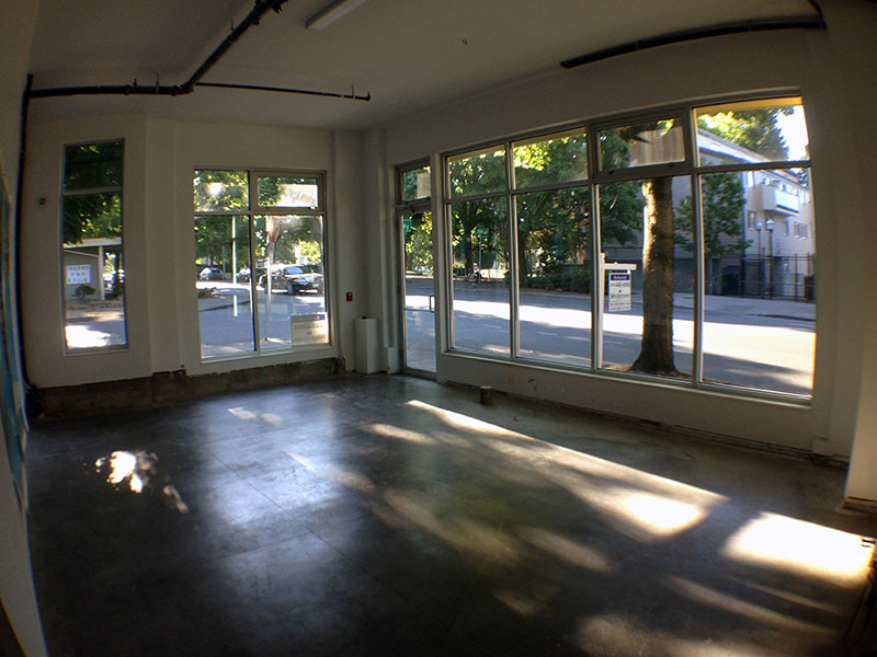 Modern commercial space for sale as part of residential unit on the street corner of Yesler and 19th Avenue in Seattle, Washington.